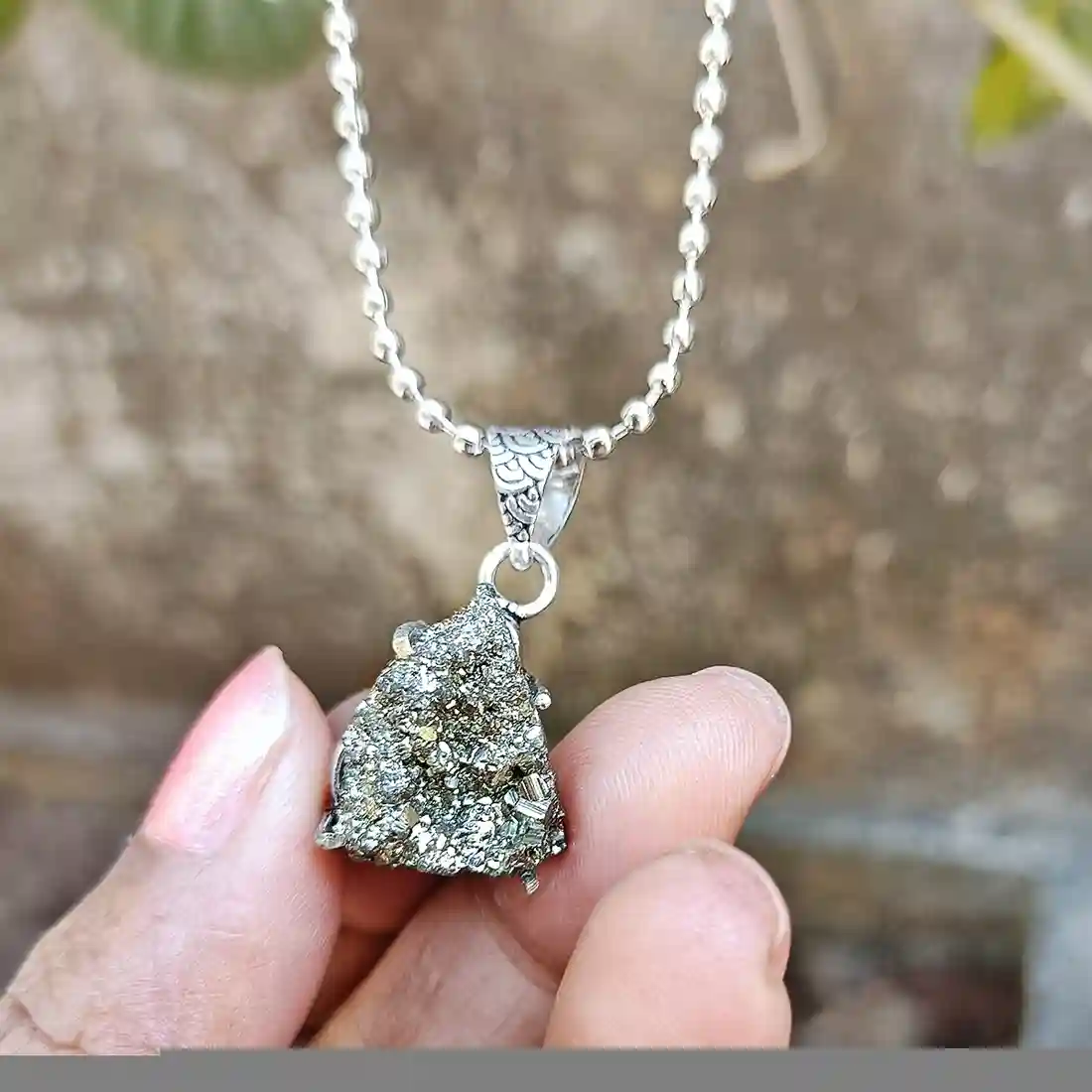 Attract abundance, confidence, and energetic protection with this Natural Raw Pyrite Pendant, exclusively from Tulsi – Pooja For Everyone.
