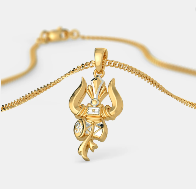 Embody Lord Shiva’s energy with the Tulsi Trishul-Damru Pendant, a spiritual and protective symbol of faith and devotion. This pendant features the Trishul, Damru, and a detailed Om engraving, representing Shiva’s trinity of creation, preservation, and destruction. Finished in a rich gold-tone, this sacred pendant is ideal for anyone seeking spiritual strength and divine protection.
